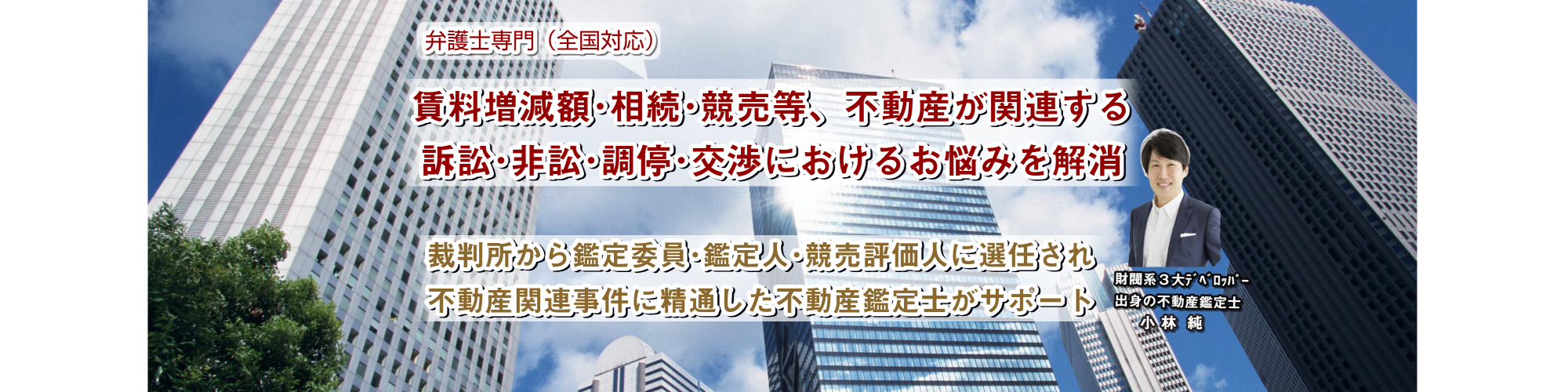 裁判所から「借地借家法」等に基づく鑑定委員(2019年~)に選任され、「土地賃借権譲渡許可申立事件」における豊富な経験があります。