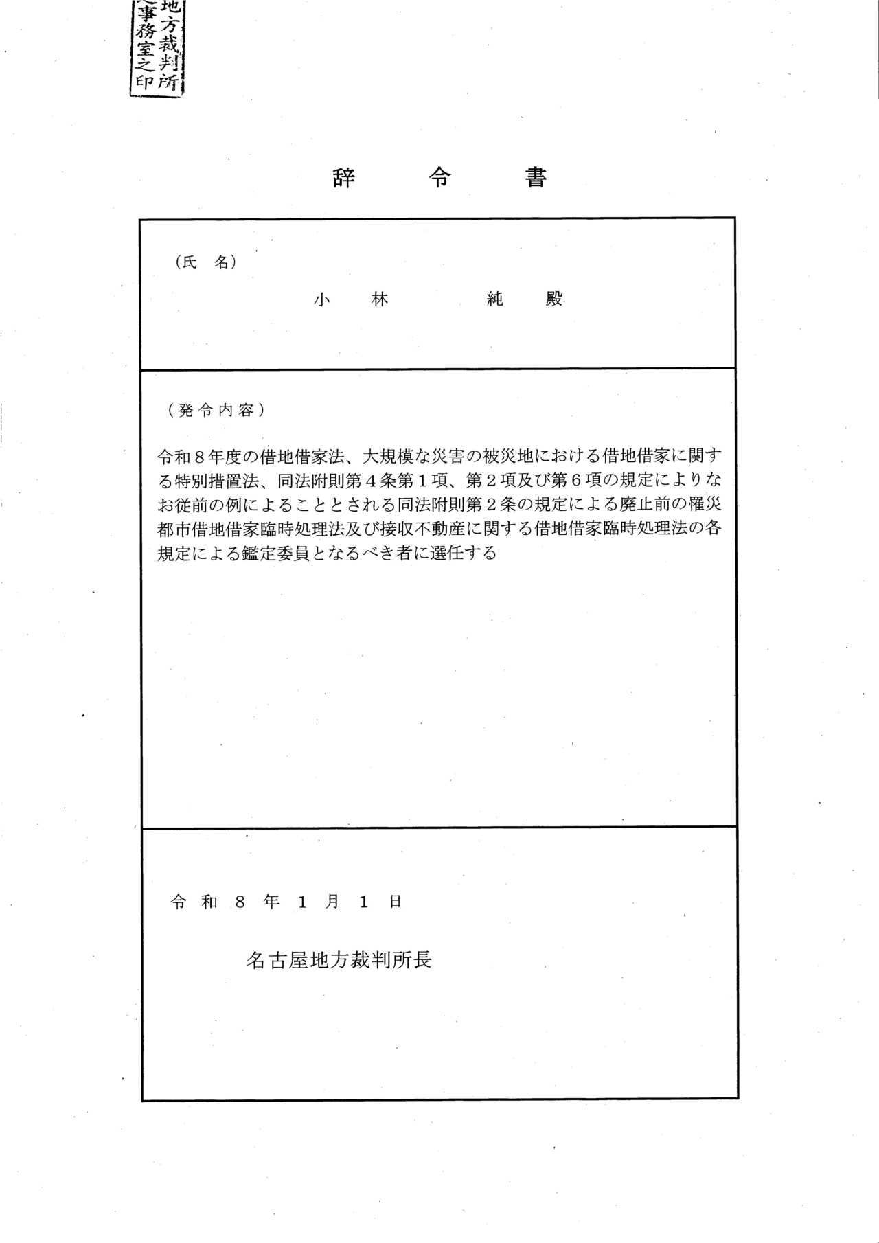 鑑定委員の辞令書